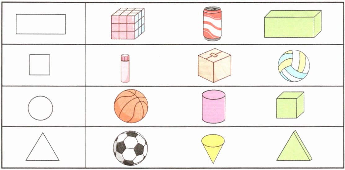4. 用右边的哪个物体能画出左边的图形?圈一圈。