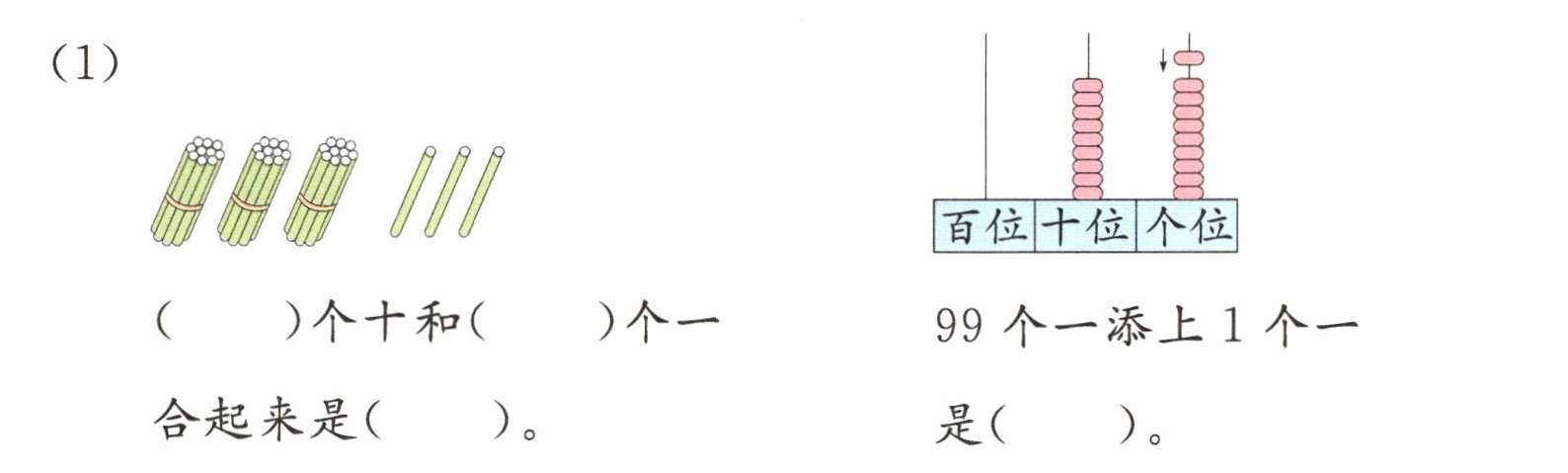 (2)一个两位数,个位上的数是6,十位上的数比个位上的数小3,这个数是(),读作()。