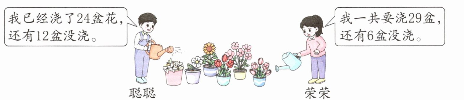 (2)荣荣已经浇了多少盆花?