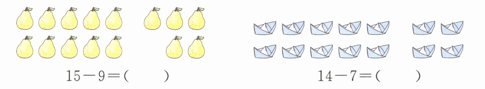 (2)计算12-9时,我们可以运用“破十法”把12分成10和2,先算()-9= (),再算()+2= ()。还可以这样想:因为9+()= 12,所以12-9= ()。