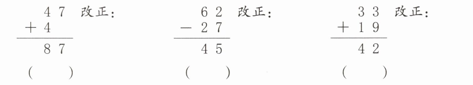 3. 下面的竖式对吗?对的画“√”,错的画“×”并改正。