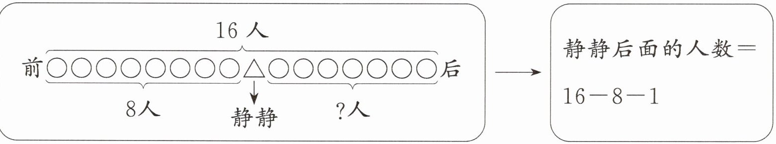 开心小学每周一升国旗,一(1)班16名女同学排成一队,静静的前面有8人,静静的后面有多少人?