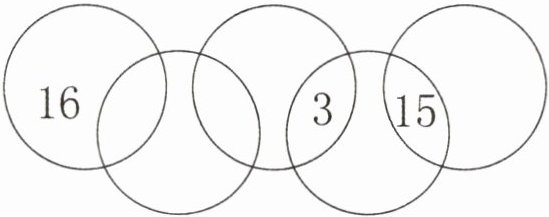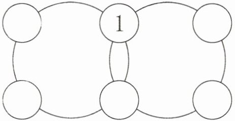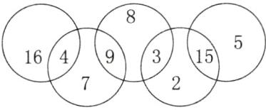 2. 如图,五个圆按照下面的方式重叠,一共分成了九个区域,请将2、4、5、7、8、9填在合适的位置,使每个圆内的数的和都是20。