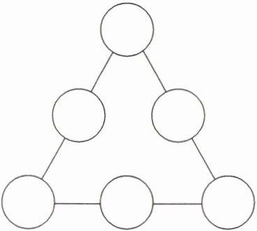 5. 将2、4、6、8、12、16分别填入下面的$◯$里,使每条线上的三个数的和相等。