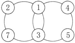 3. 把2、3、4、5、7分别填入下面的$◯$里,使每一个大圆上4个数的和等于13。