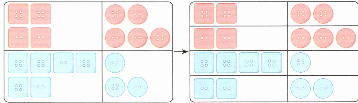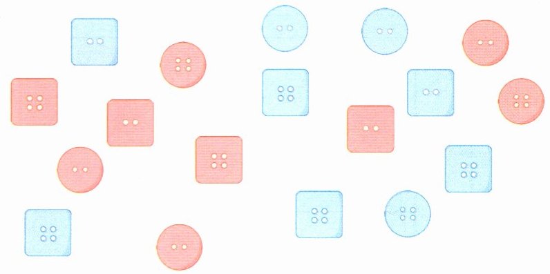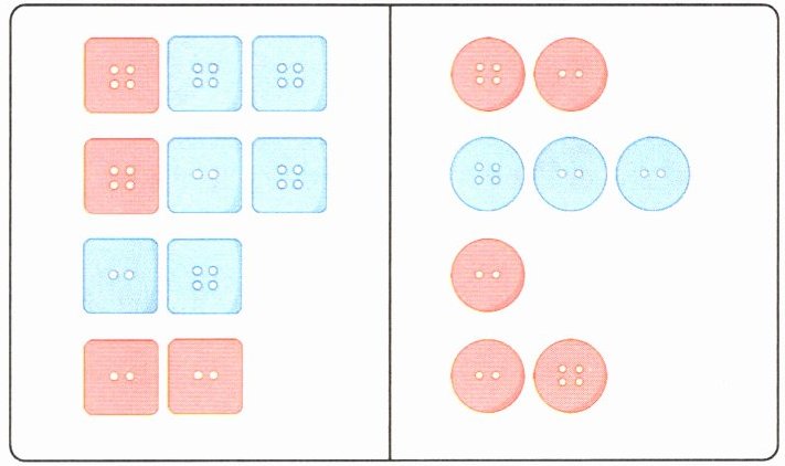 (1)这些纽扣怎样分类?用右边的纽扣图片分一分。