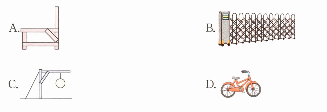 (1)(浙江·温州)下面图中,没有运用三角形稳定性的是()。