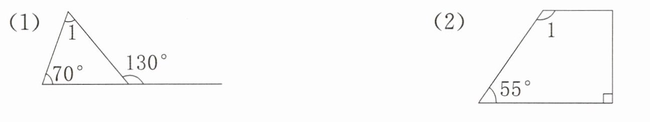(2)$∠1=360^{\circ }-90^{\circ }-90^{\circ }-55^{\circ }=125^{\circ }$