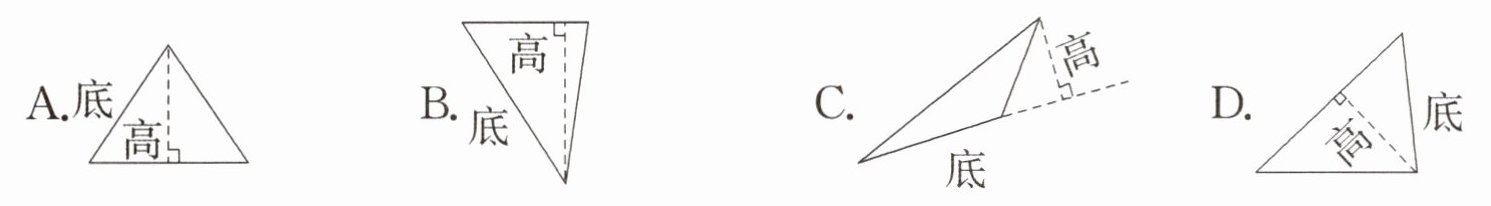 (1)下面三角形指定底边对应的高的画法正确的是()。