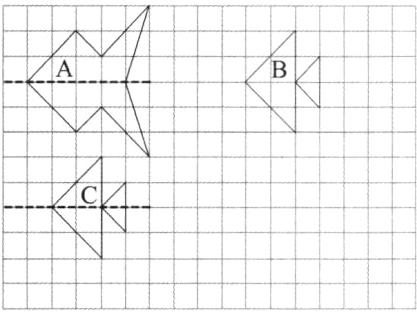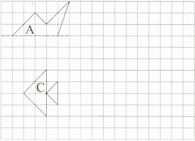 ③将图形C先向右平移8格,再向上平移5格,画出平移后得到的图形B。