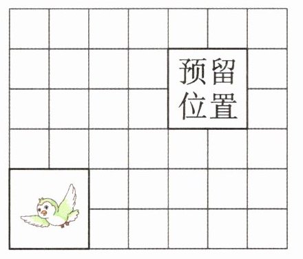 (2)(北京·昌平)如图,丽丽想把照片放到预留的位置,可以先把照片向()平移()格,再向()平移()格。