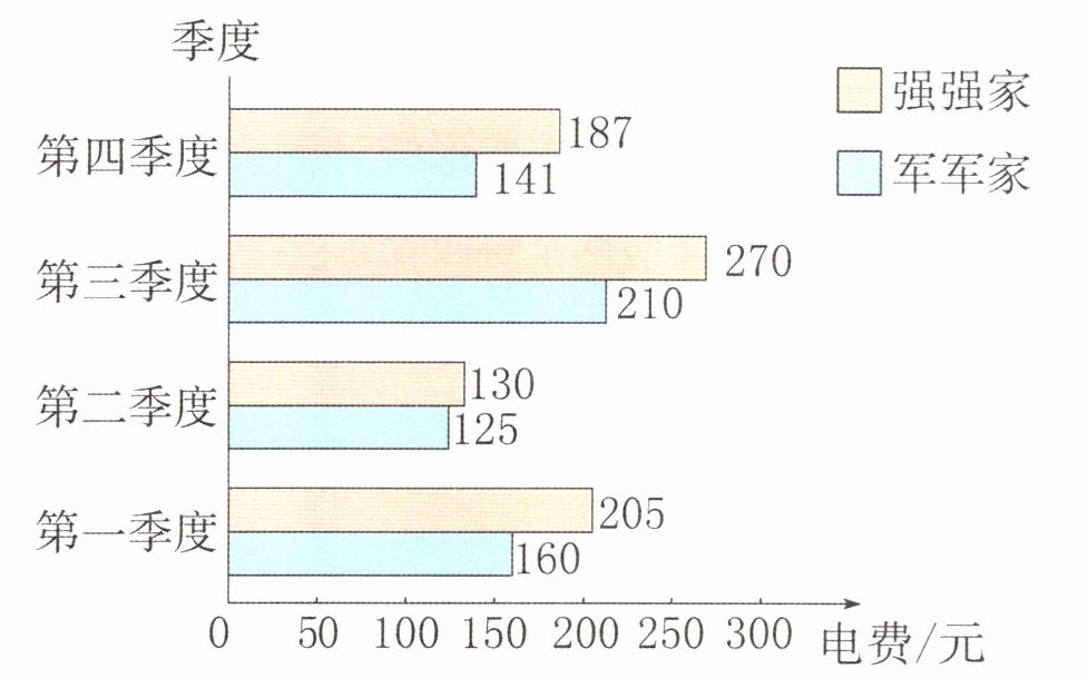 ①军军家第()季度的电费最少;强强家第()季度的电费最多。