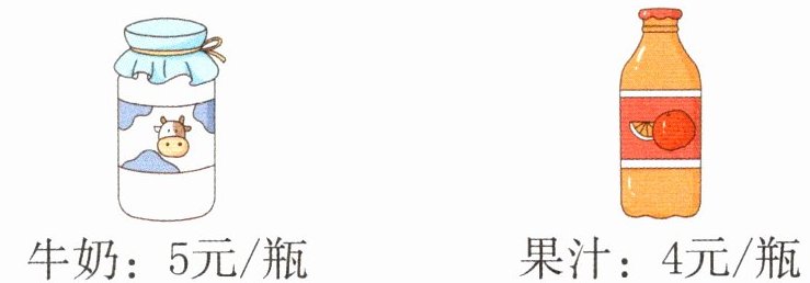 (3)爸爸在超市里购买了如图所示的果汁和牛奶共12瓶,花了52元。爸爸买了()瓶牛奶。