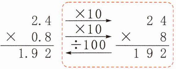 (2)借助因数和积的变化规律,将2.4×0.8转化成整数乘法计算。