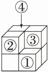 (4)(北京·西城)用7个同样的正方体摆成一个物体(如右图)。从标有①、②、③、④的正方体中拿走一个后,剩下的部分从前面、上面和左面看到的图形都是