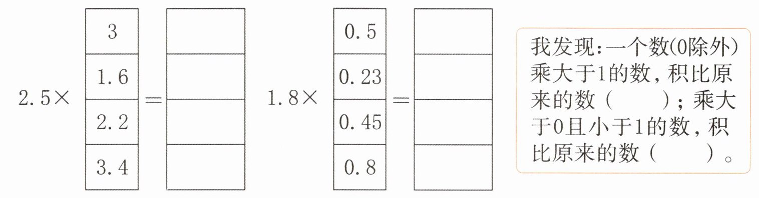 (1)0.36×7.2的积是()位小数;4.6×0.027的积是()位小数。