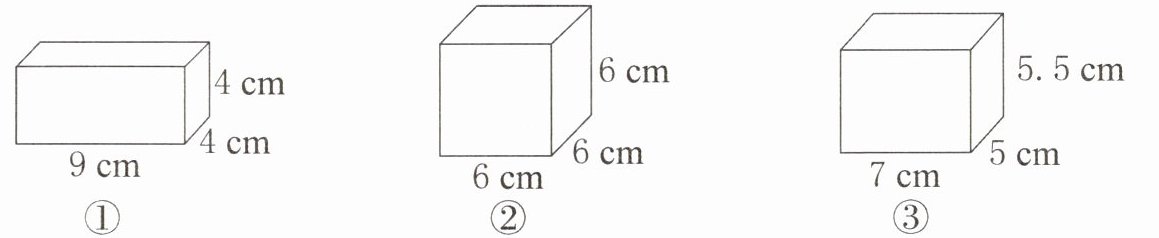 (2)一个长方体包装盒,从里面量长、宽、高分别是30cm、20cm、25cm,则它的容积是$()cm^3。$