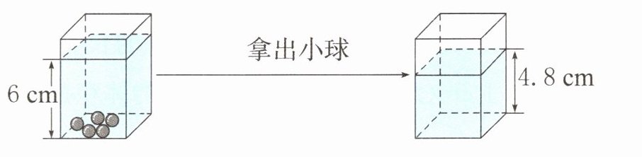 (4)如图,在一个底面是正方形且装有水的长方体容器中,有5个体积都是$6cm^3$的小球。由图可知,这个容器的底面边长是()cm。(容器厚度忽略不计)