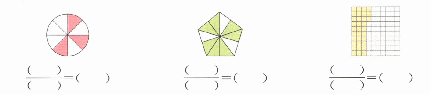 (1)分别用分数和小数表示下面各图中涂色部分的大小。