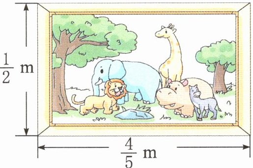 根据右图可知,这个画框是一个长$\frac {4}{5}m$、宽$\frac {1}{2}m$的长方形,求做这个画框需要多长的木条,就是求这个长方形的周长。