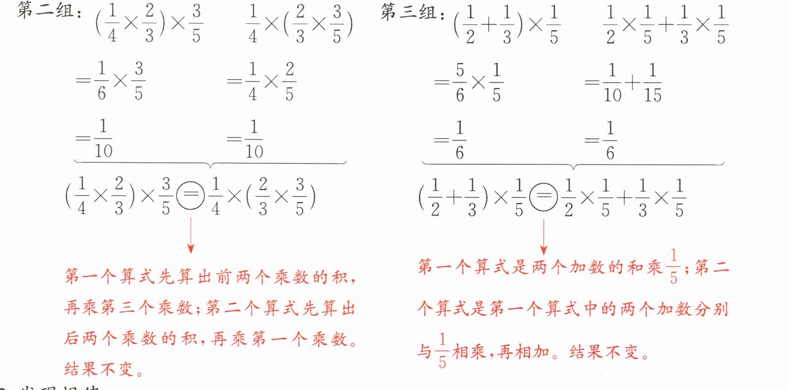 例题1:计算下面每组的两个算式,看看它们有什么关系。