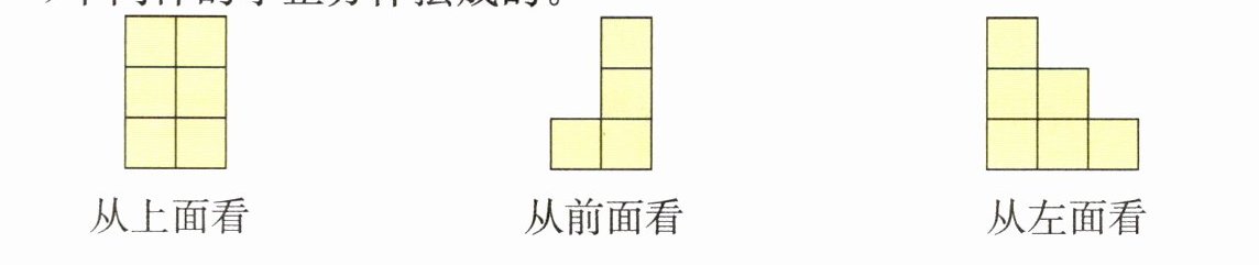 (6) 一个由多个同样的小正方体摆成的几何体,从上面、前面、左面看到的图形如图所示。这个几何体是由()个同样的小正方体摆成的。