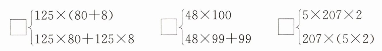 3. 根据运算律,在$□$里填上合适的数,在$◯$里填上合适的运算符号,使运算更简便。(每空 1★)