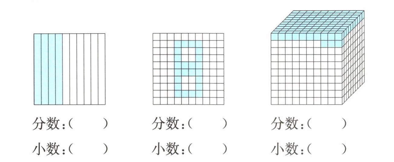 4. 用分数和小数表示图中的涂色部分。(每空 1★)