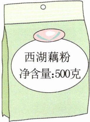 5. (经典好题)西湖藕粉是杭州的名产,南宋时期一度成为历代皇帝的贡品。已知每千克莲藕大约可以制作出 0.08 千克藕粉。1 吨莲藕大约可以制作出多少藕粉?将这些藕粉进行装袋(如图),能装满 100 袋吗?(6★)
