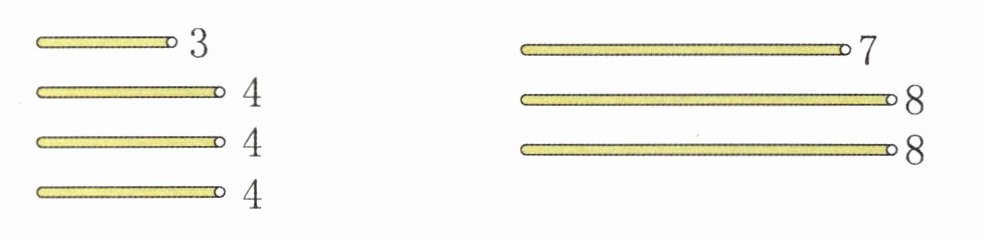 4. 从下面的小棒中选出 3 根,能拼成()种不同的三角形。(单位:cm)(4★)