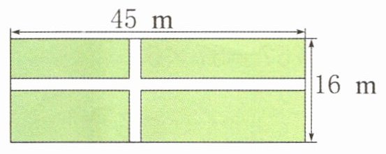 草坪的面积: (45 - 2)×(16 - 2) = 602 (m²)