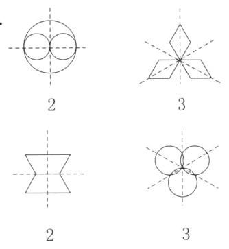 5. 先画出下面图形的所有对称轴,再数一数分别有几条。(每空2★)