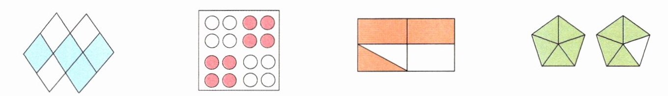 4. 把下面每个图形都看作单位“1”,用分数表示各图中的涂色部分。(每空 1★)