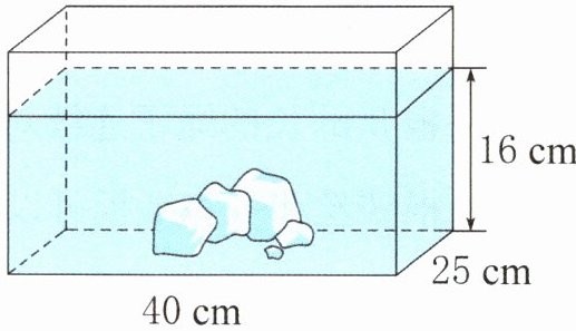 2. 一个长方体玻璃缸,长 40 cm,宽 25 cm,缸内水深 12 cm。如图,把一些石头放入水中后,水面高度上升到 16 cm,求这些石头的总体积。(玻璃缸厚度忽略不计)(13★)