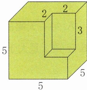 表面积:$5×5×6 = 150(cm^{2})$ 体积:$5×5×5 - 2×2×3 = 113(cm^{3})$