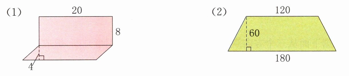 (2) $ ( 120 + 180 ) × 60 ÷ 2 = 9000 ( cm ^ { 2 } ) $