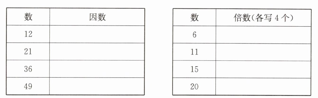 5. 写出表格中各数的因数或倍数。(每空 2★)
