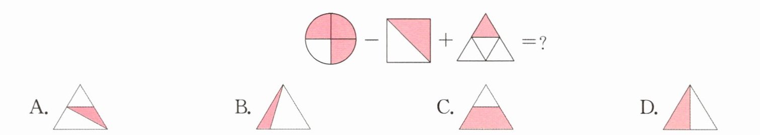 2. 如果将下面三种图形的面积都看作“1”,那么可以表示涂色部分面积的运算结果的是()。