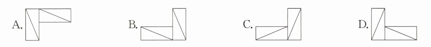 1. 下面某个图形中的一个长方形是由另一个长方形绕某个顶点按顺时针方向旋转$90^{\circ }$后得到的,这个图形是()。