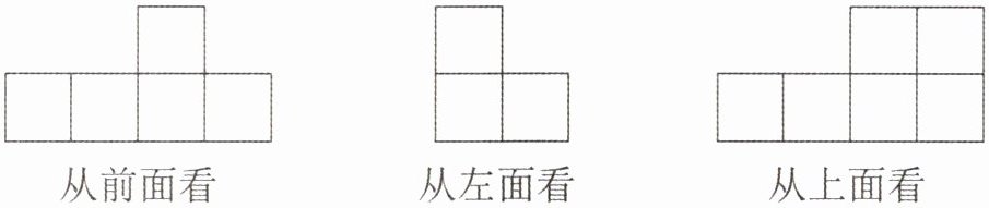 2. 一个几何体,从三个方向观察到的图形如图所示。这个几何体是由()块小正方体木块摆成的。