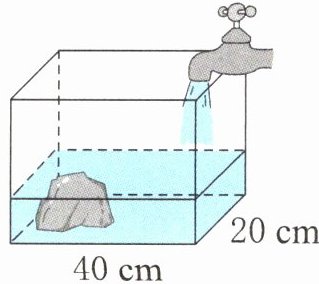 2. 如图,一个玻璃缸中放着一块高 15 cm、体积为 $2100cm^{3}$ 的石头。如果水管以每分钟 $4dm^{3}$ 的流量向玻璃缸内注水,那么至少需要多长时间才能将石头完全浸没? (玻璃厚度忽略不计)(7★)