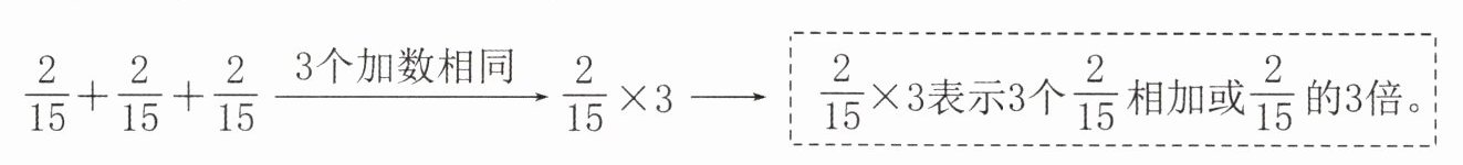 4. 探究$ \frac { 2 } { 1 5 } × 3 $的计算方法。