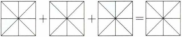 $ \frac { ( ) } { ( ) } + \frac { ( ) } { ( ) } + \frac { ( ) } { ( ) } = \frac { ( ) } { ( ) } \quad \frac { ( ) } { ( ) } × ( ) = \frac { ( ) } { ( ) } $