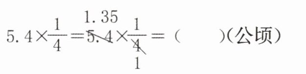 算法二:把$\frac{1}{4}$转化为小数计算。$5.4×()=()$(公顷)