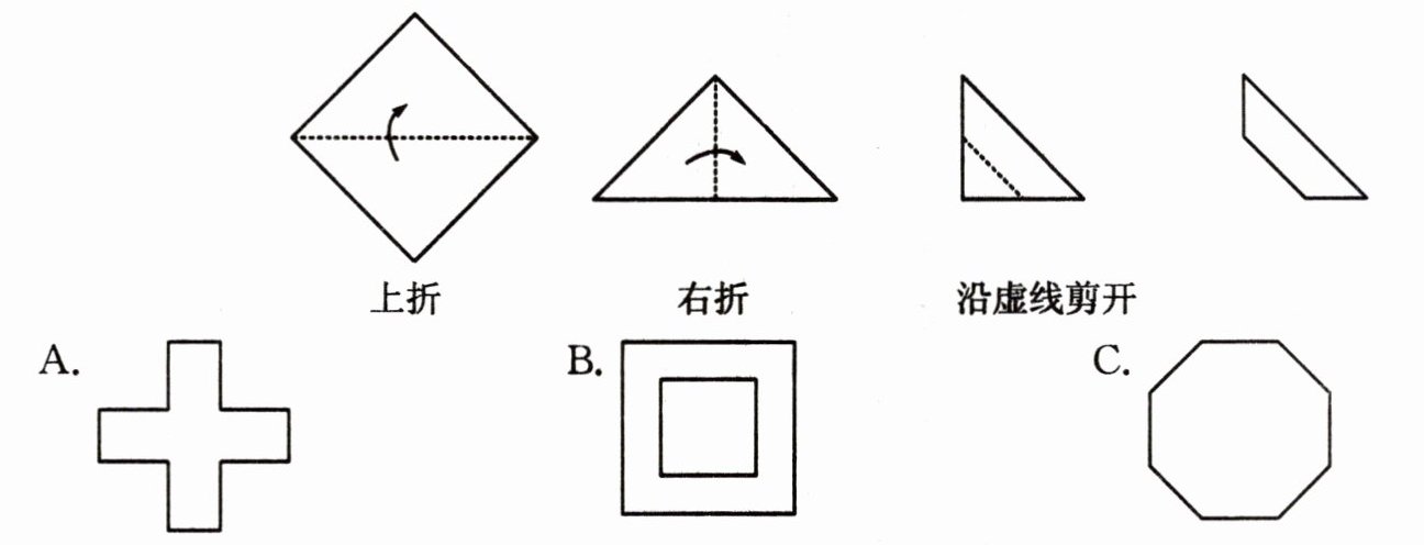 4. 如图所示,把一个正方形三次对折后沿虚线剪下,则所得图形是(