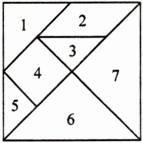 利用图中的七巧板,根据平移或旋转设计一个美丽图案。