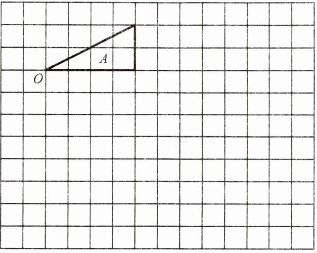 2. 先将图形A绕点O顺时针旋转90°得到图形B,再将图形B向右平移4格得到图形C,最后画出图形C的轴对称图形D(对称轴为较短直角边)。