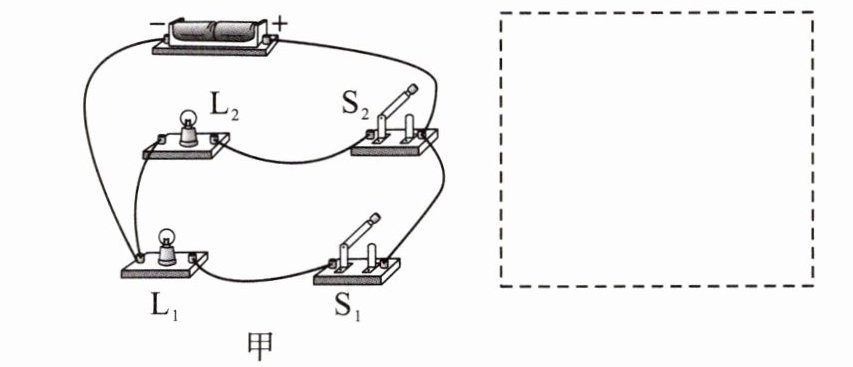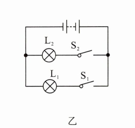 【答案】 由图甲电路图可知,两灯泡并联,每个开关控制一个支路,根据实物图画出电路图,电路图如图乙所示。