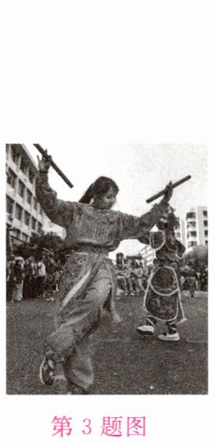 3. 如图所示的英歌舞是我国国家级非物质文化遗产,表演者在表演过程中,不断改变两根舞槌对击的力度,目的是改变声音的 …………………………………………………()