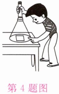 4. 晚上,在桌面上铺一张白纸,将一小块平面镜平放在纸上,让手电筒的光正对平面镜照射,如图所示,则从侧面看去 ………………………………………………… ()
